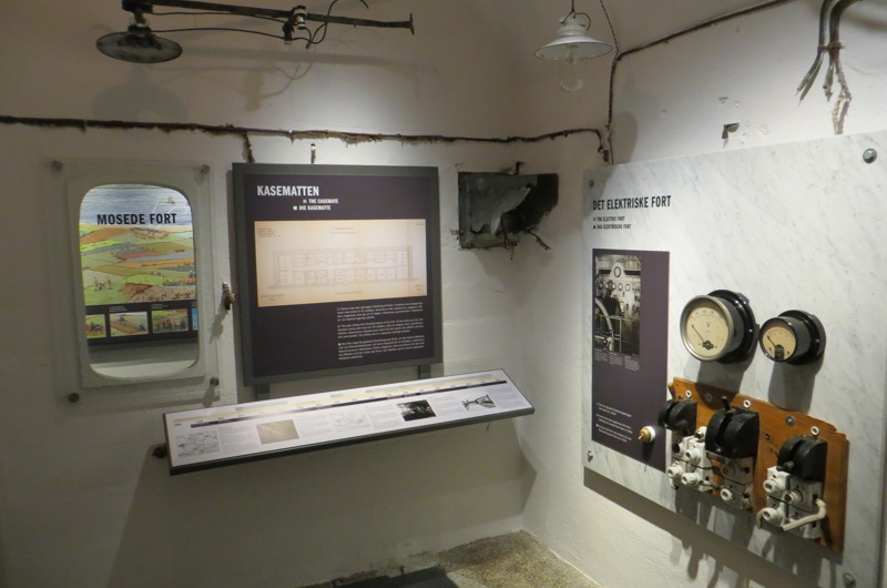 I maskinkasematten med det tilhørende akkumulatorrum bagved kan du læse om Mosede Fort både før, under og efter 1. verdenskrig.