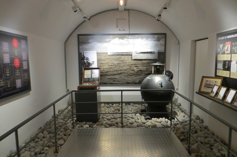 Misforståelsen mellem kong Christian X og flådeadmiral Kofoed-Hansen drejede sig om, hvorvidt minerne ville være aktiverede eller ej. I rummet viser vi både en mine af den type, der blev udlagt, og et minebord. Minebordet er ganske vist en model fra slutningen af 1940'erne, men den har samme funktioner som de mineborde, man brugte under 1. verdenskrig.