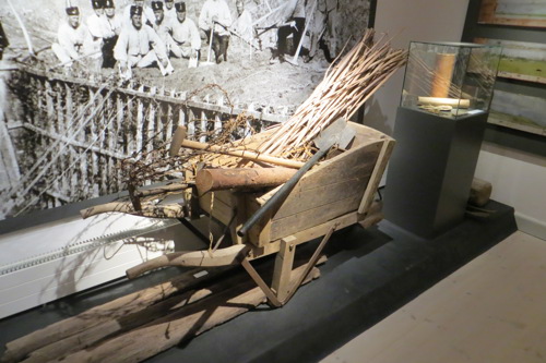Udover at fortælle om krigens gang, fortæller kortene også om det militære problem, der førte til anlæggelse af Tunestillingen. Avisforsider og kort på det store skrivebord fortæller historien om bombardementet af den belgiske by Antwerpen i oktober 1914. Denne begivenhed fik alle til at erkende, at Københavns befæstning ikke ville kunne holde længe over for et angreb med moderne kanoner.